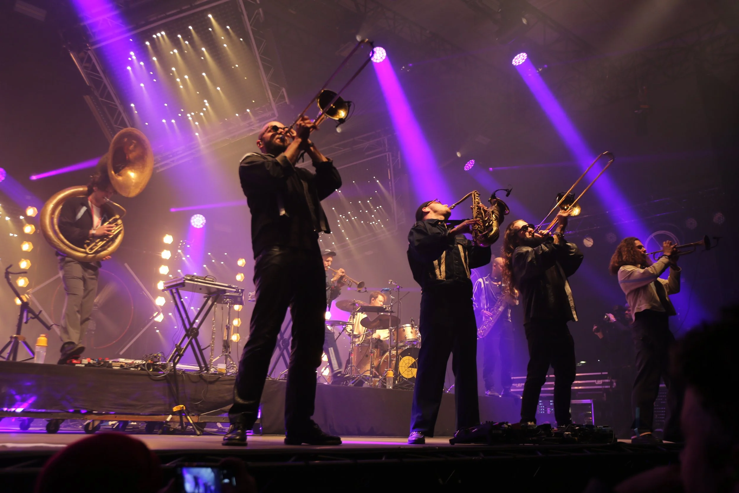 Visuele elementen die de energie en sfeer van het festival overbrengen